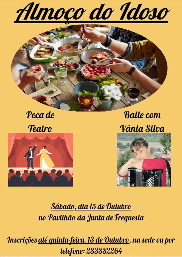 Estão abertas as inscrições para o Almoço do Idoso na sede da Junta de Freguesia ou por telefone: 283 882 264, até dia 13 de ... -